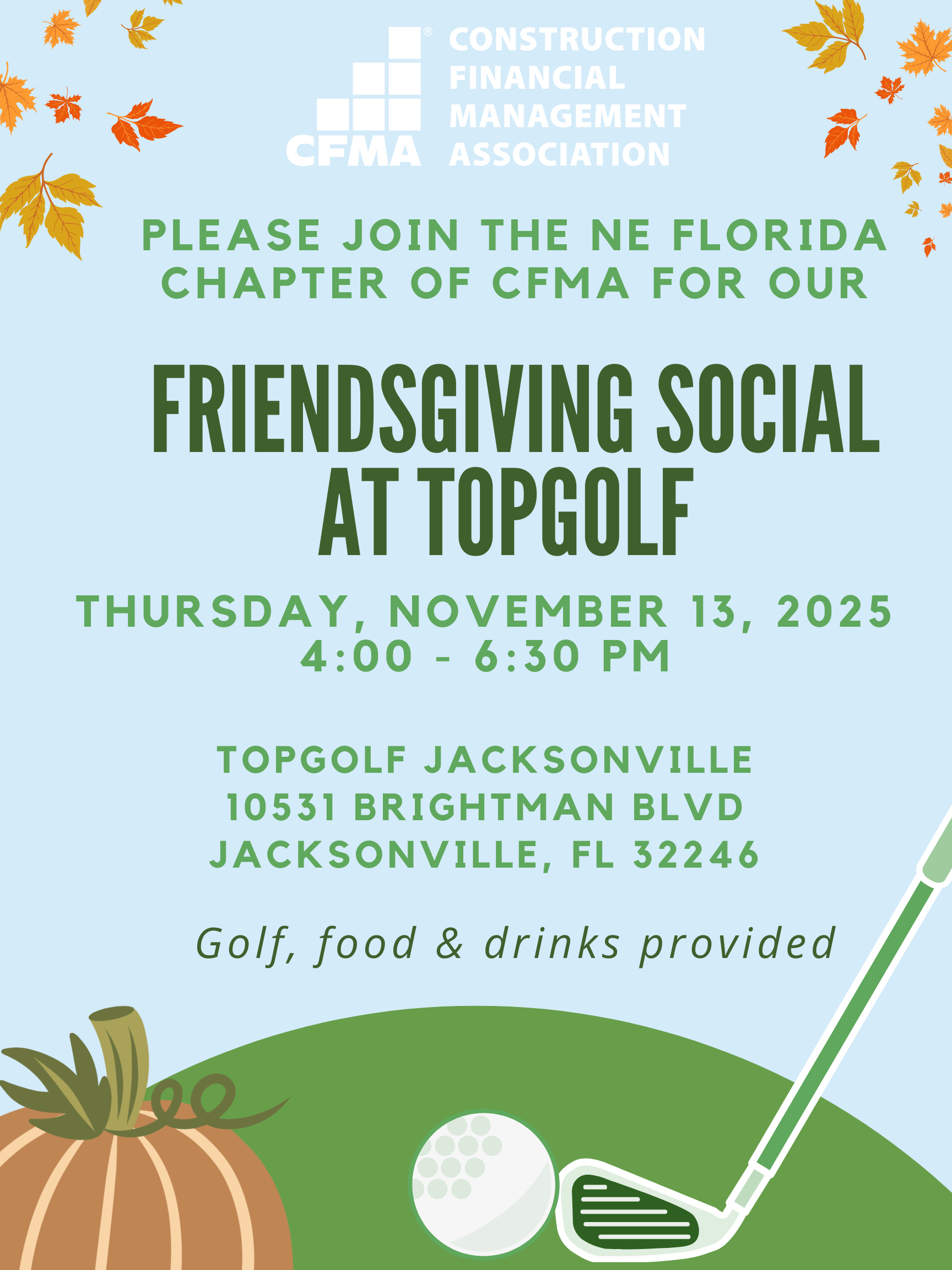 Nov 13, 2025 - 4:00 PM (ET) - Topgolf Jacksonville, 10531 Brightman Blvd, Jacksonville, FL 32246