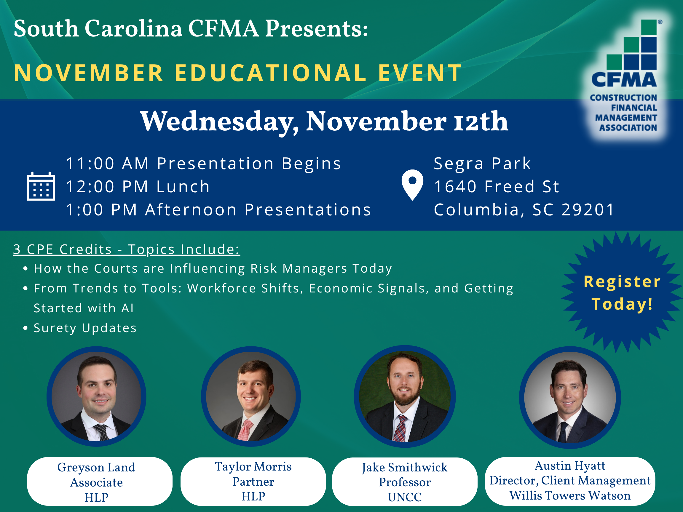 Nov 12, 2025 - 11:00 AM (ET) - Segra Park, 1640 Freed St Columbia, SC 29201
